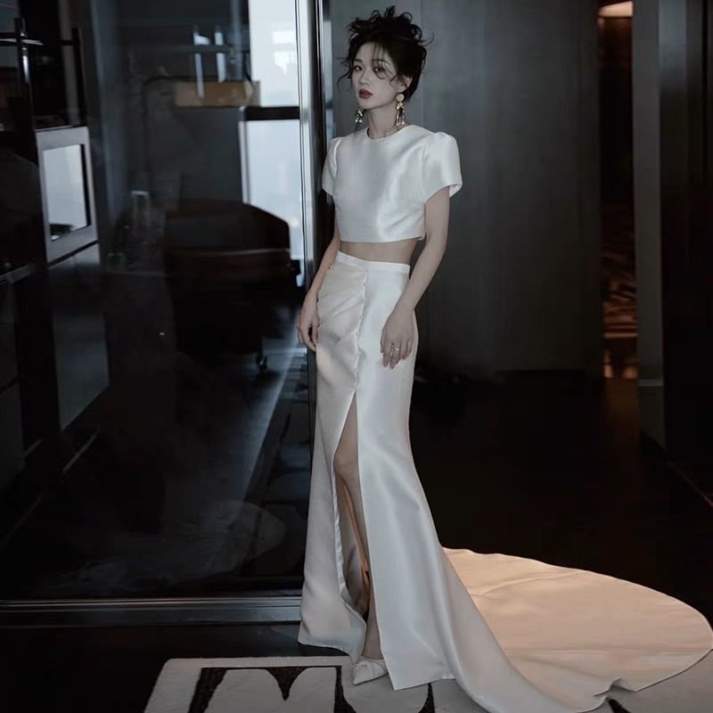 現品即納:Mサイズツーピースサテンドレス