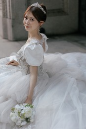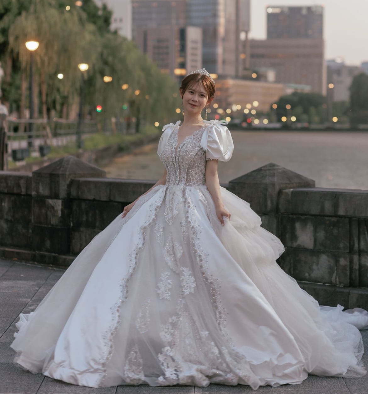 Used即納:Mサイズ韓国風豪華パフスリーブプリンセスドレス