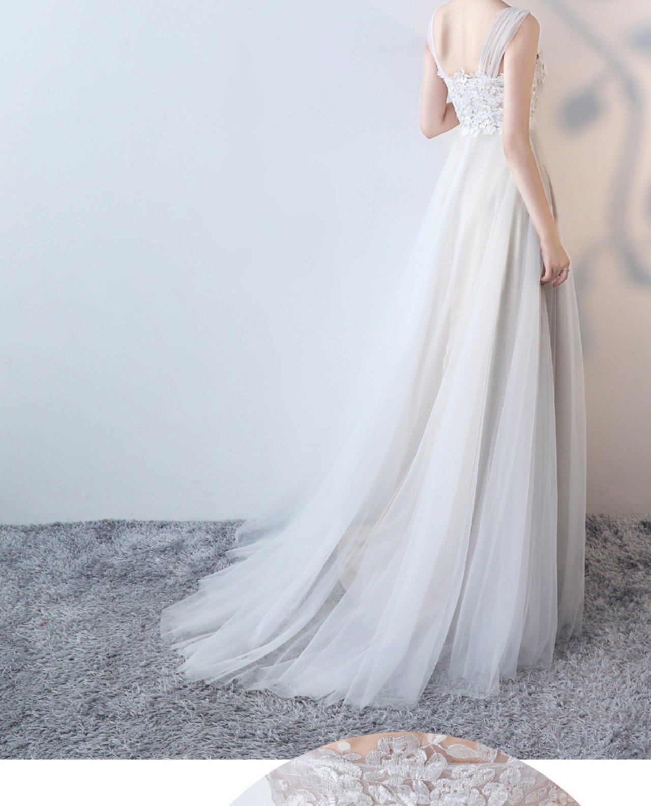 現品即納:Mサイズ刺繍袖なしウエディングドレス(W17)