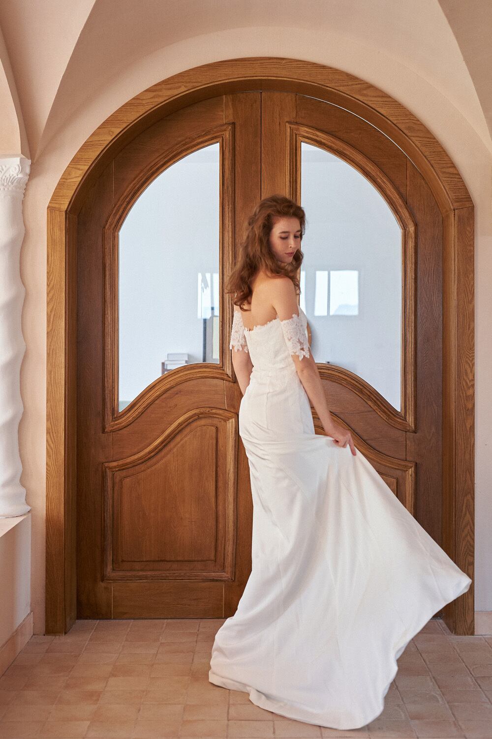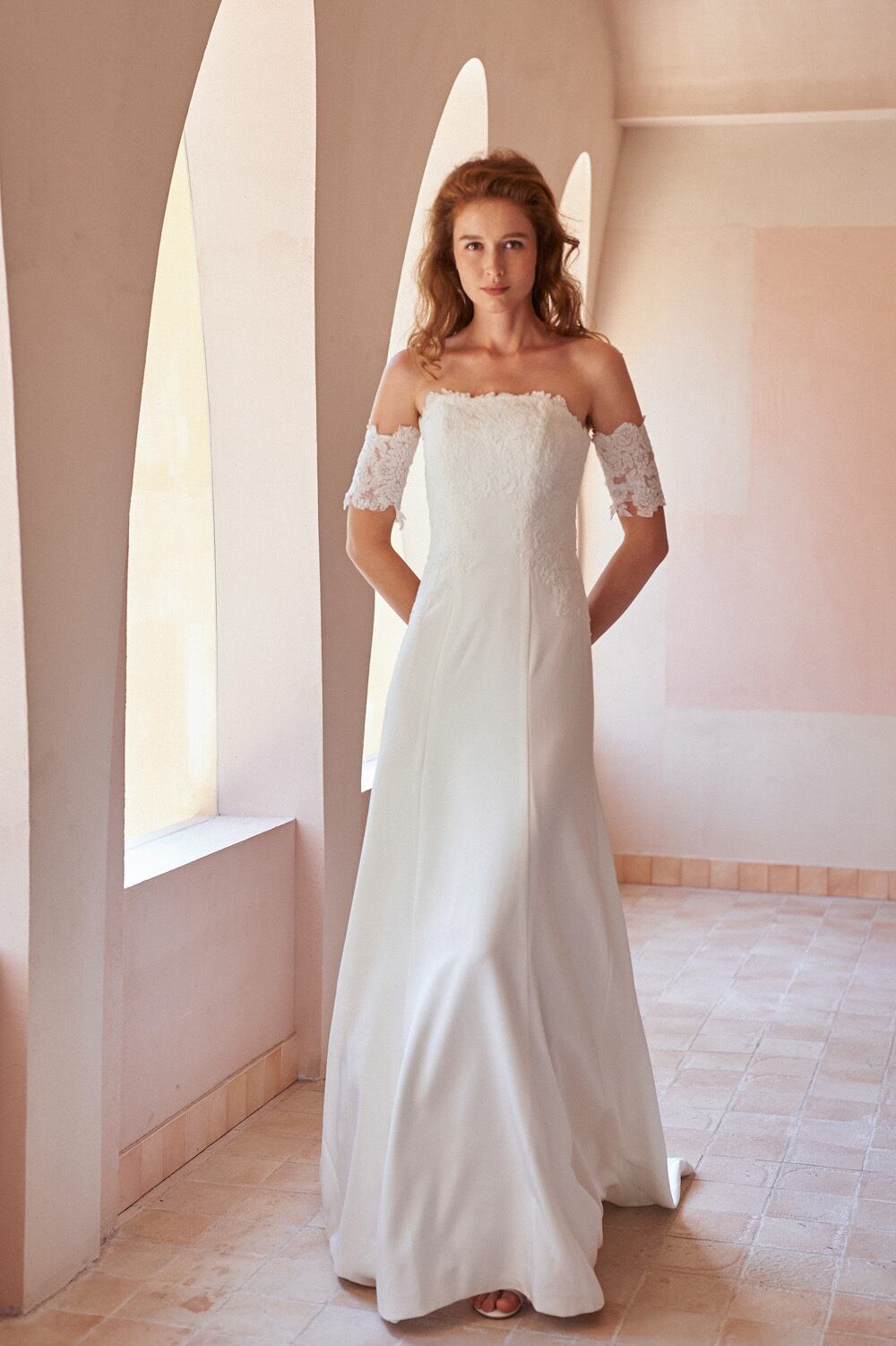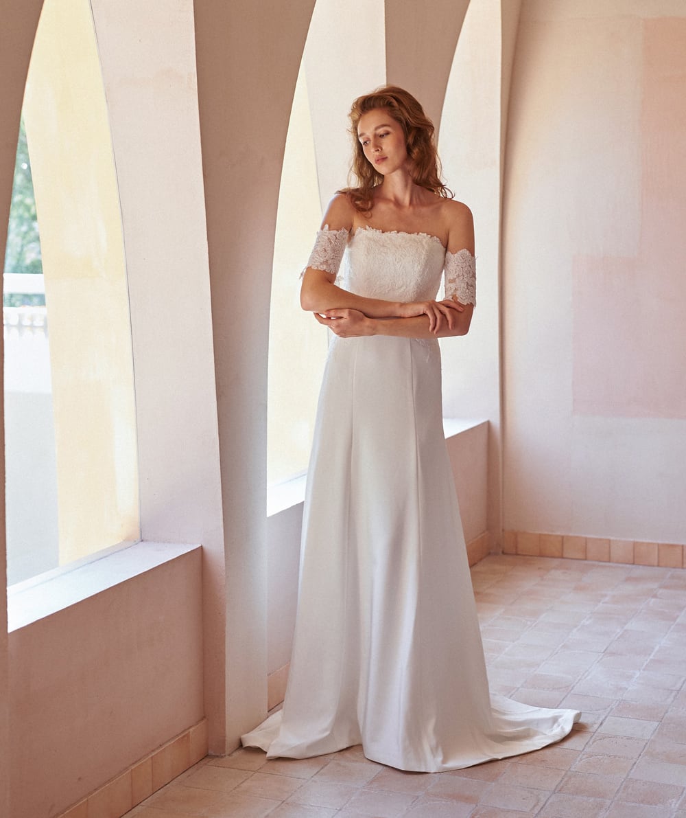 レースオフショルダースレンダードレス