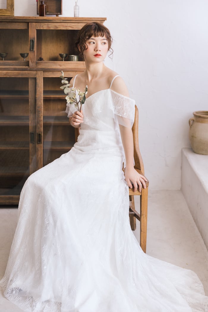 新品ドレスを用意し、このままご購入可能です。新品を用意するため3-5週間納期をいただきます。お急ぎ便も対応可能です。