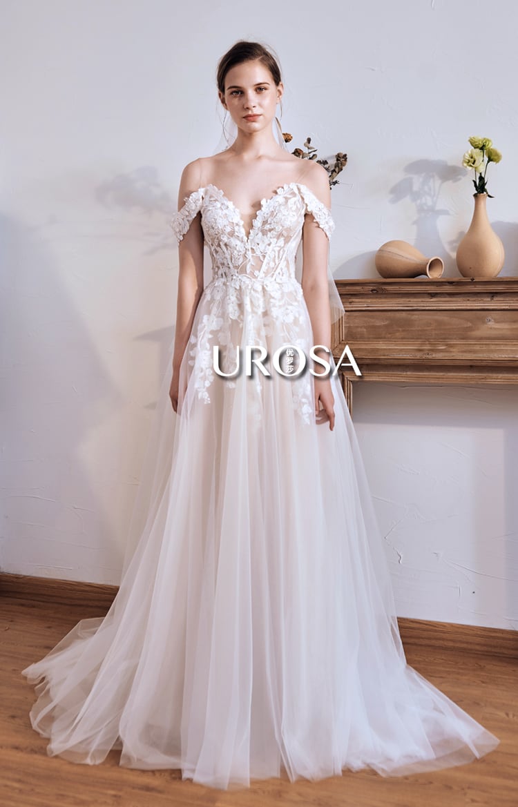 オフショルダーふんわり刺繍ドレス