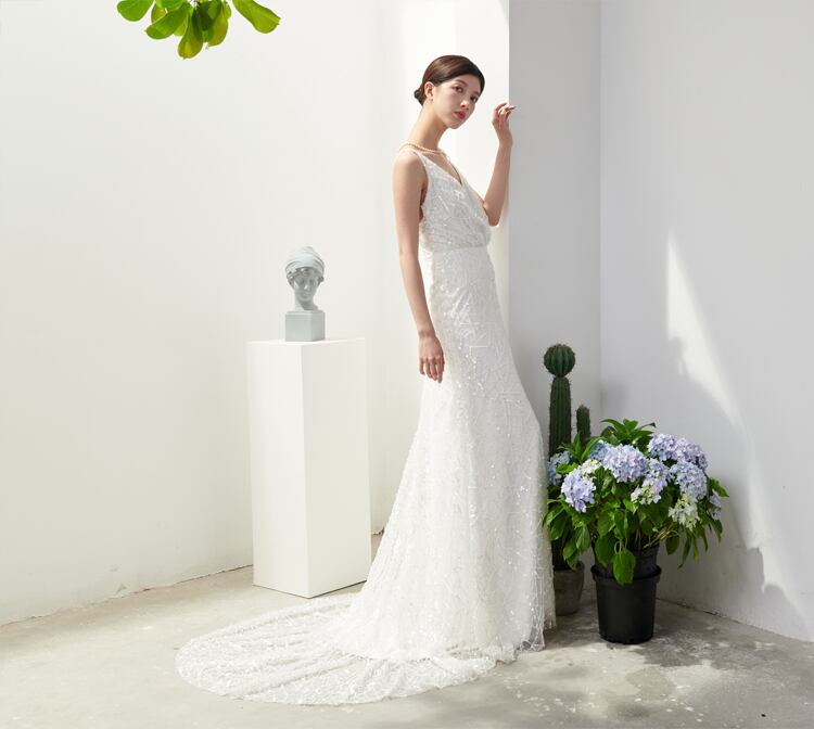 新品ドレスを用意し、このままご購入可能です。新品を用意するため3-5週間納期をいただきます。お急ぎ便も対応可能です。