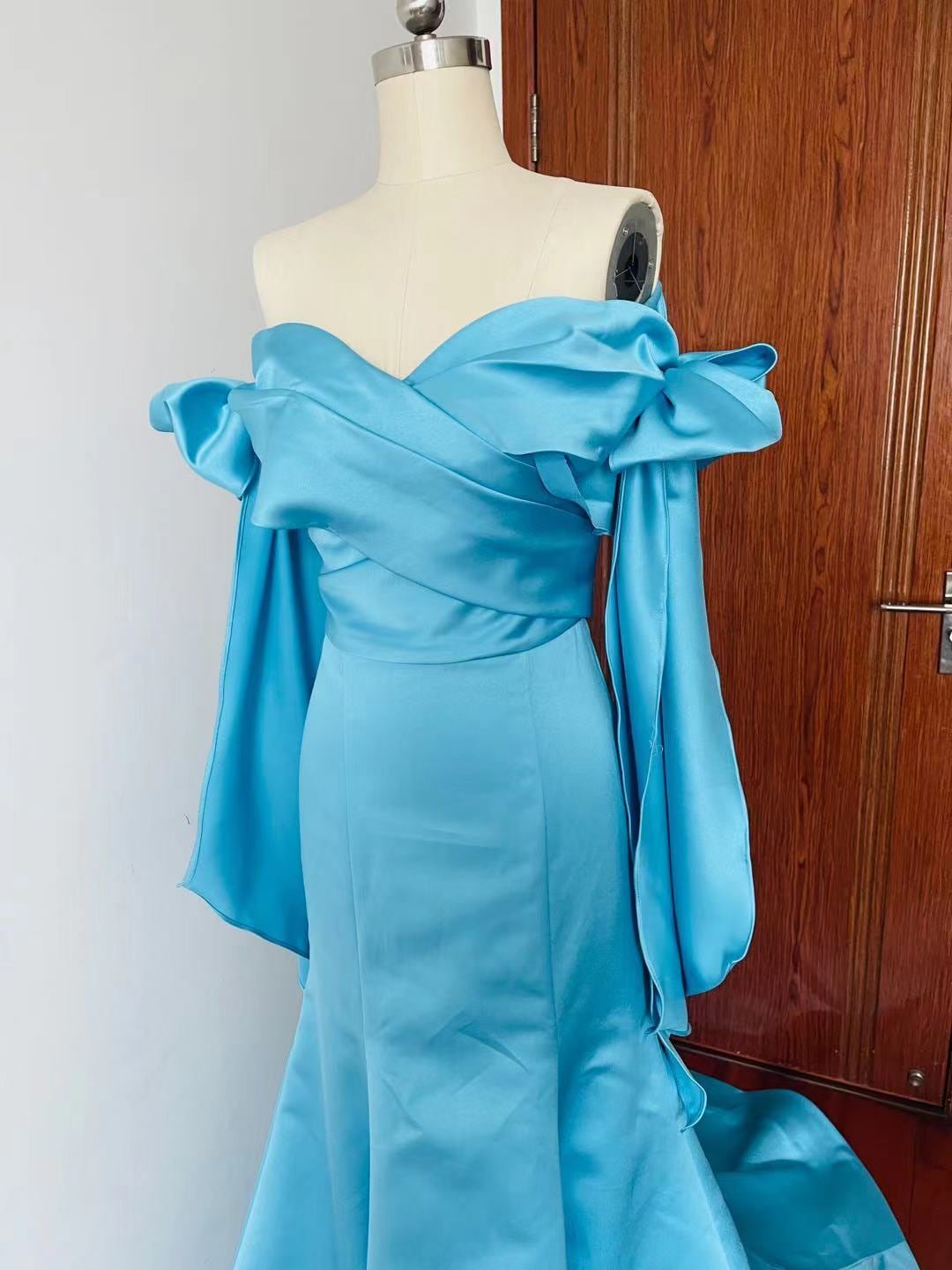 リボンオフショルダーマーメイドドレス