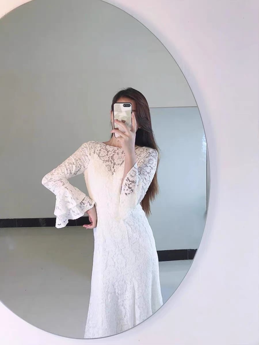 フレア長袖付きレースドレス