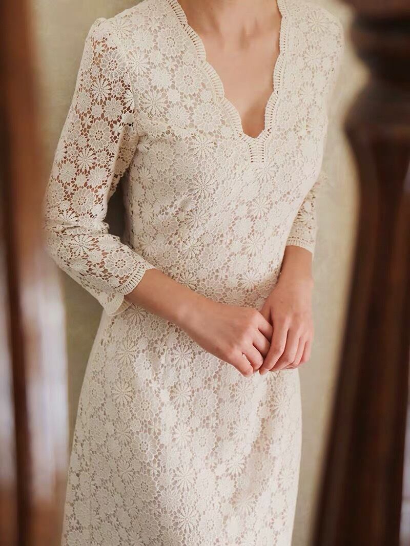 アンティーク風袖付きスレンダードレス