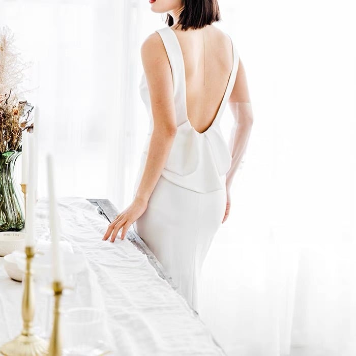 背中空きフリル付きドレス