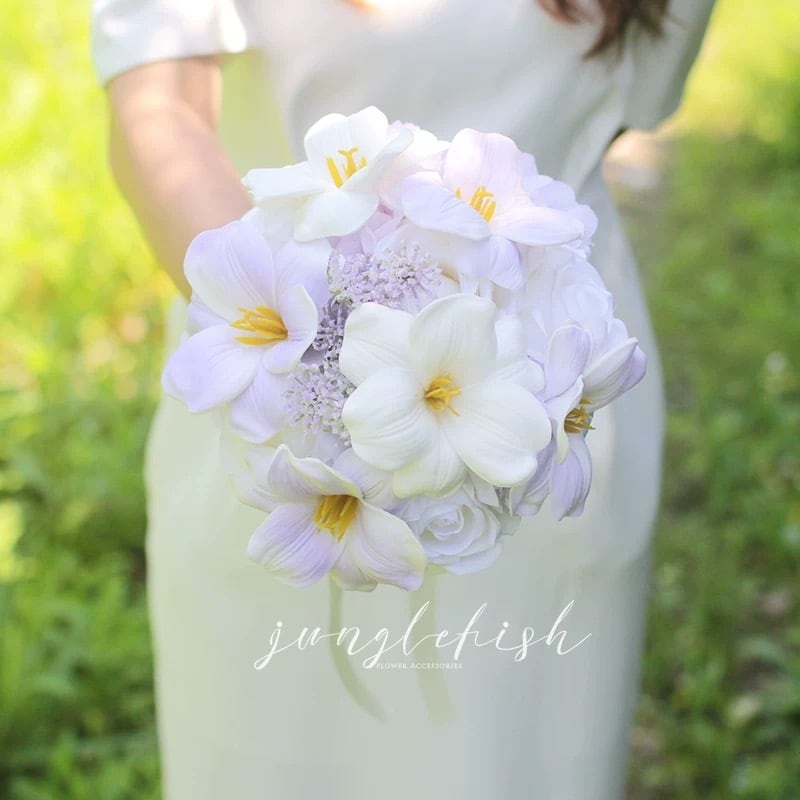 できるだけ丁寧に梱包して発送しますが、ヨレや崩れも考えられます。届いたらブーケを広げてください。小さいノリの跡や小さいお花の崩れ、欠損もございます。気になる方はご遠慮ください。