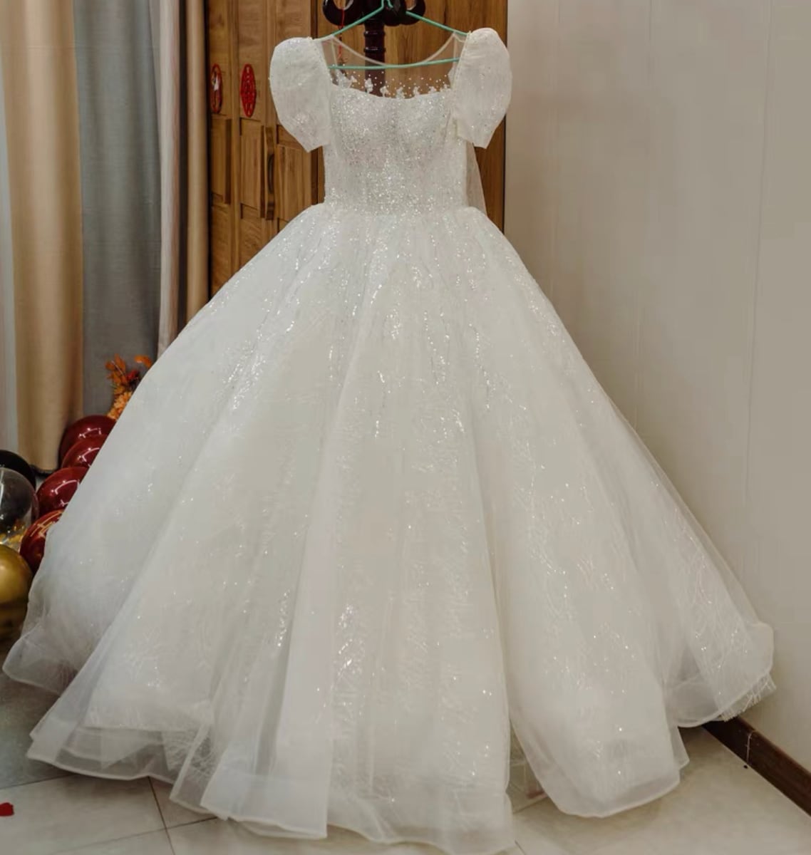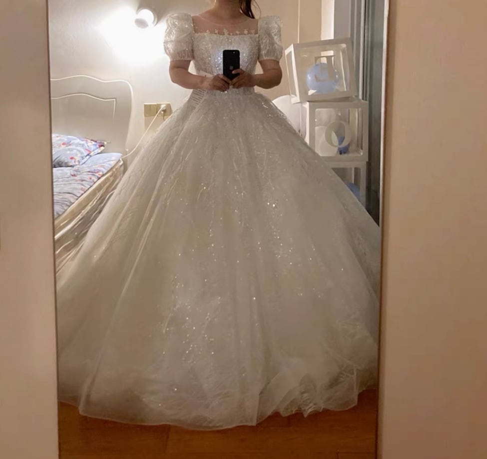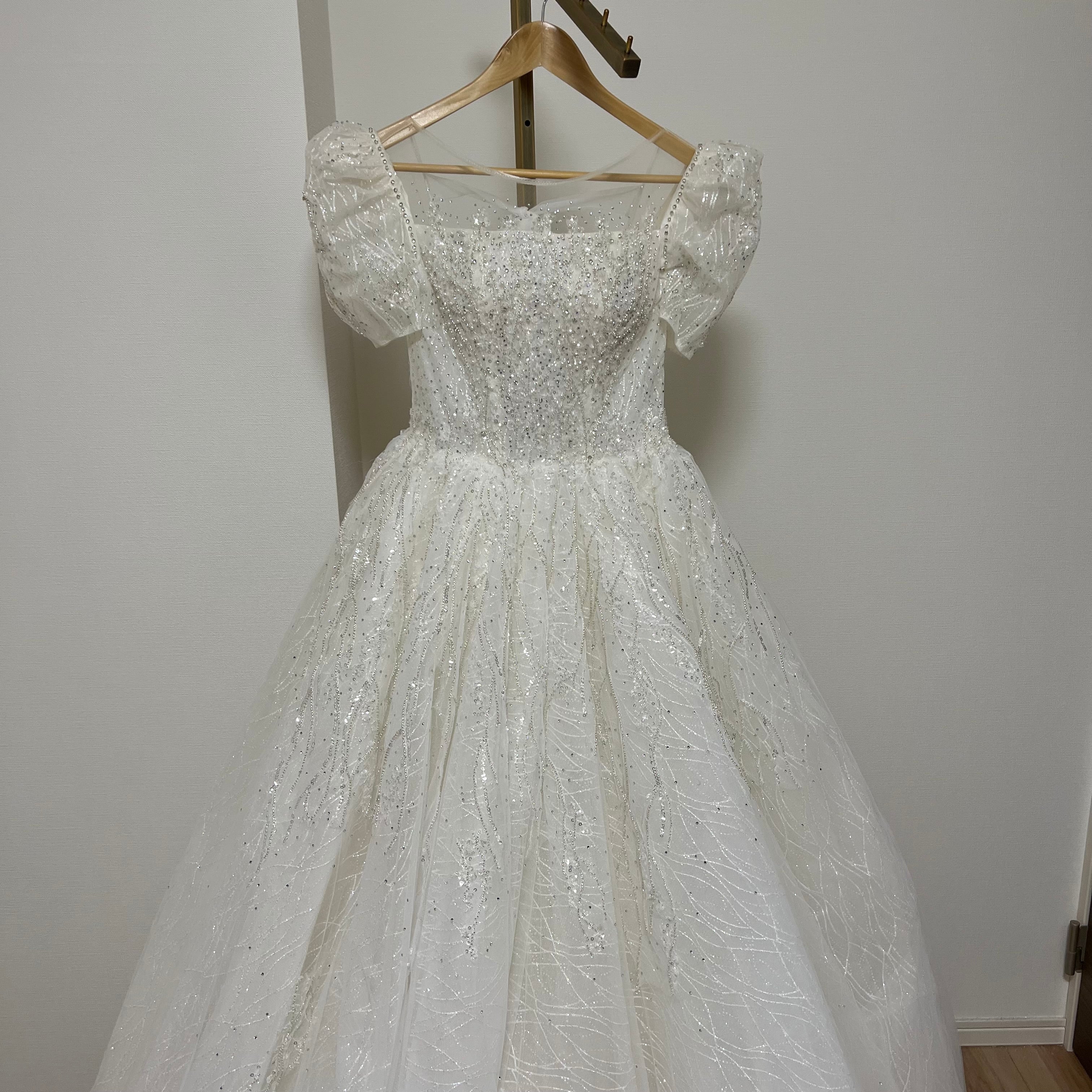 ドレスは刺繍複雑なデザインで、時期によって刺繍、ビーズは変更する場合はございます。ビーズ取れる可能性もございます。