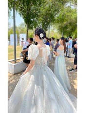 韓国出身のデザイナーさんとコラボで作った豪華ドレスです。直接職人さんに作っていただいたため、お手頃なお値段で実現しました!