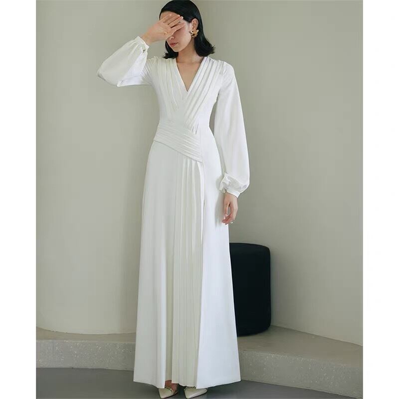 袖付きVネックスタイリッシュドレス