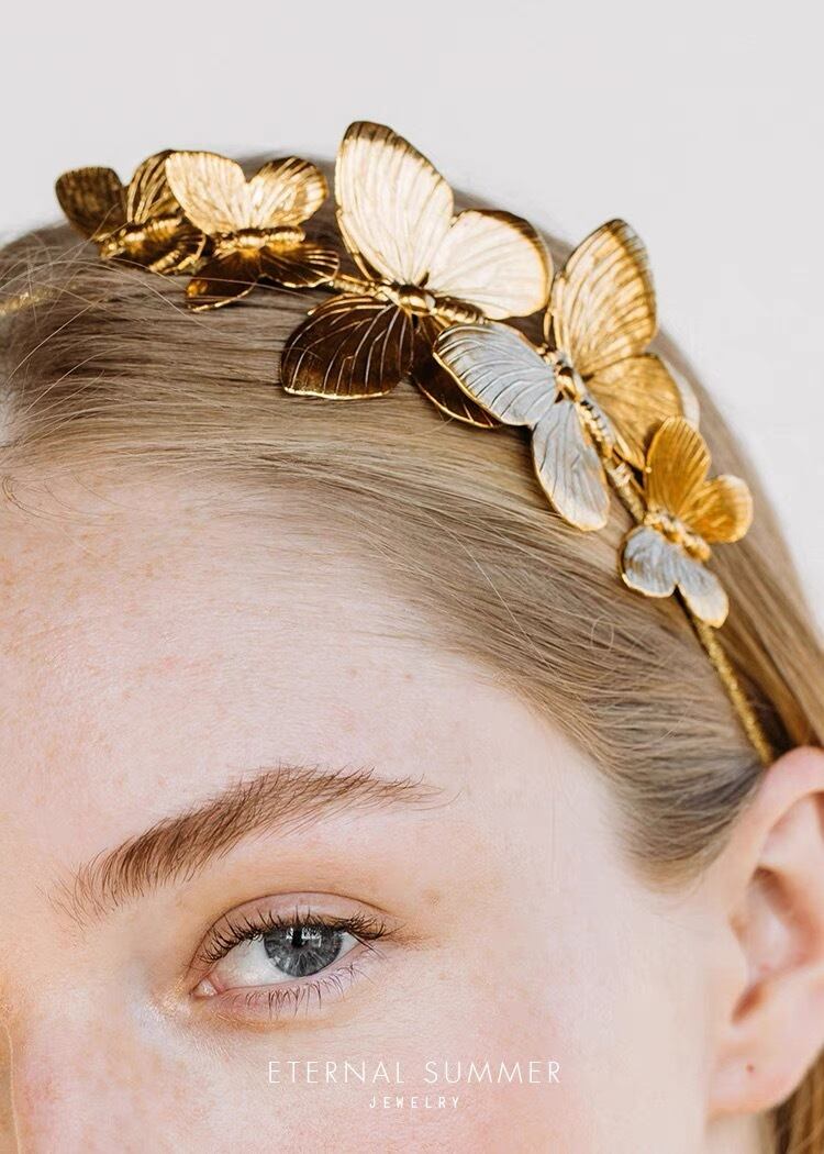 金メッキ蝶々カチューシャヘアアクセ
