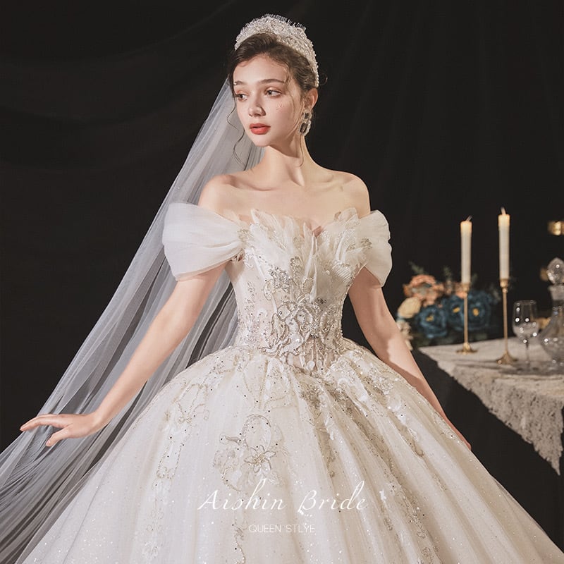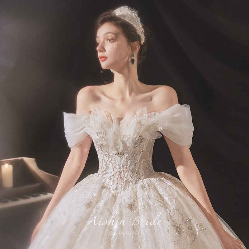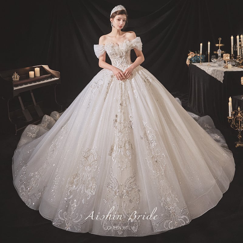 韓国風豪華ドレス:オフショルダーふんわりドレス