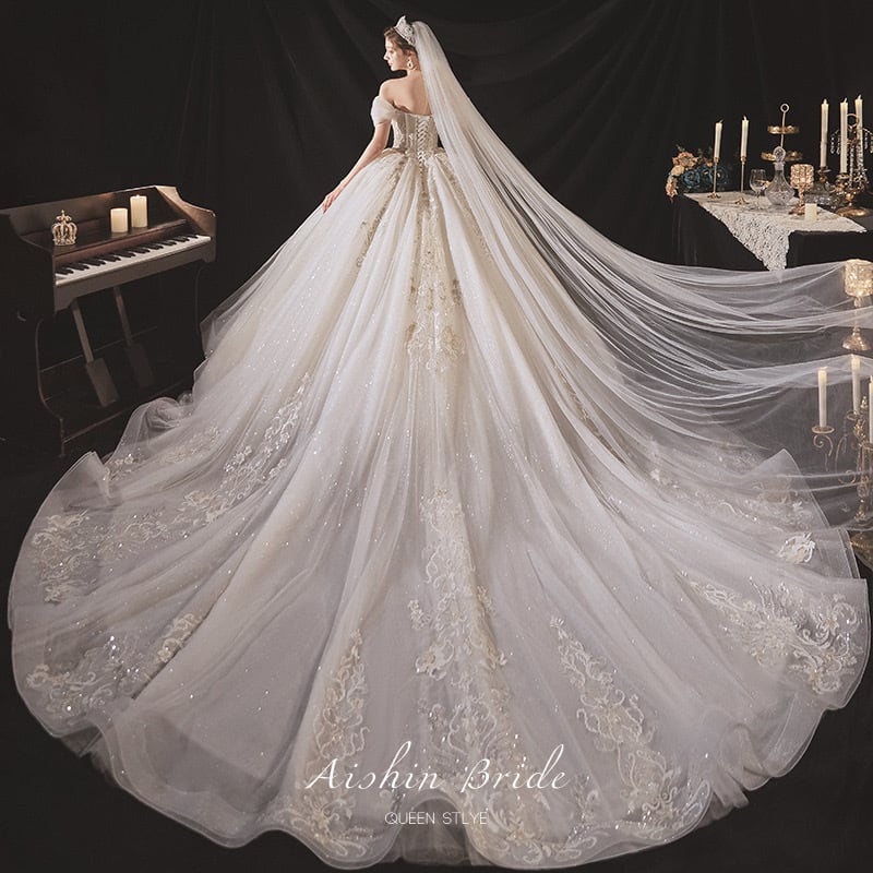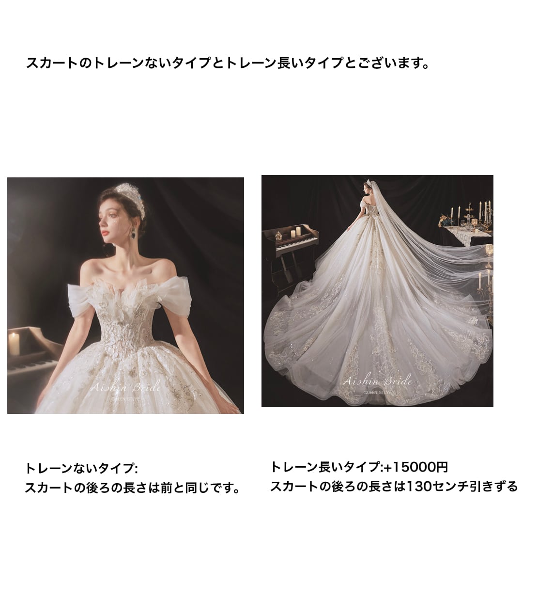 トレーン長いタイプ:スカートの後ろの長さは130センチ引きずります(+15000円)