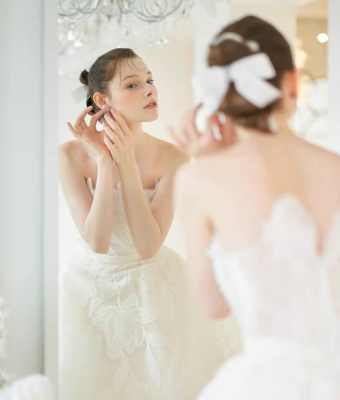 新品ドレスを用意し、このままご購入可能です。新品を用意するため3-5週間納期をいただきます。お急ぎ便も対応可能です。