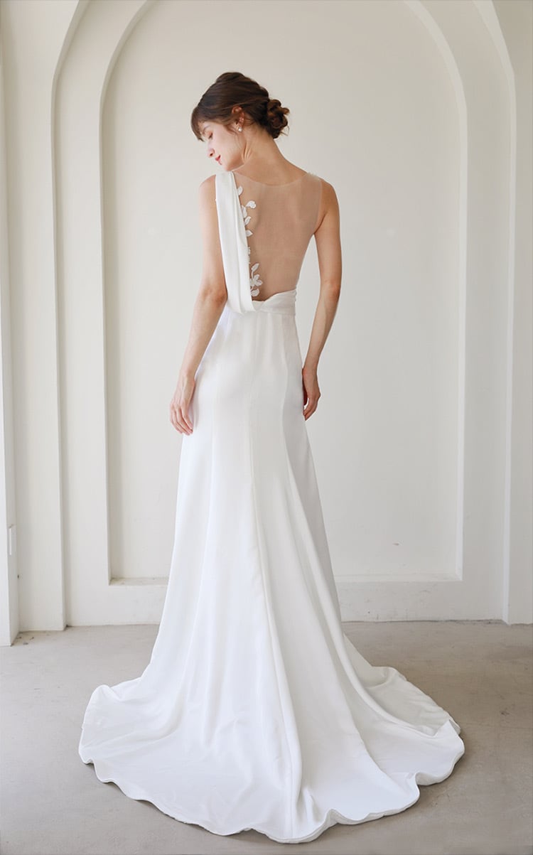 背中刺繍しっとり生地ドレス