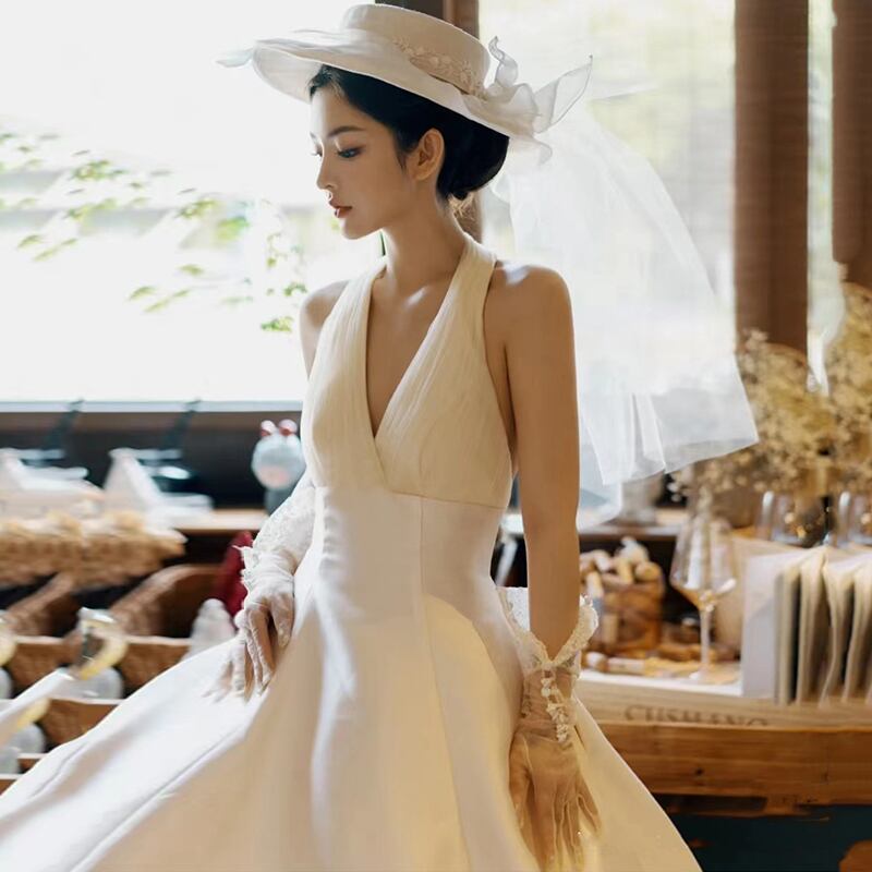 現品即納:Sサイズサイズオードリー風サテンドレス